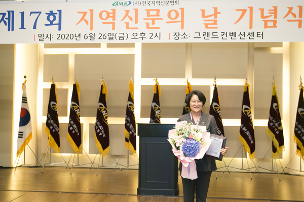 경기 화성시의회 신미숙 의원이 26일 오후 2시 서울 그랜드컨벤션센터에서 열린 ‘제17회 지역신문의 날 기념식’에서 기초의원 부분 의정대상을 수상했다.