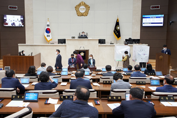 개회식 후 제1차 본회의를 열어 ▲의장·부의장 선거 ▲자치행정·문화복지·경제환경·도시건설위원회 위원 선임의 건 ▲자치행정·문화복지·경제환경·도시건설위원장 선거 ▲의회운영위원회 위원 선임의 건 ▲의회운영위원장 선거 등 총 7건의 안건을 처리했다.