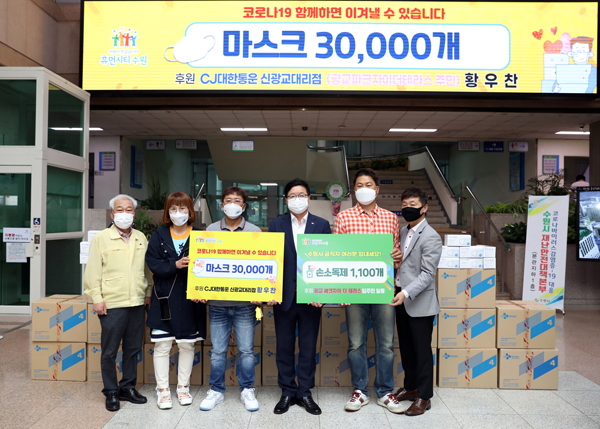 마스크 3만장을 후원한 CJ 대한통운 신광교대리점 황우찬 대표는 “감염위험을 무릅쓰고 시민들을 위해 애쓰고 계신 공직자들에게 감사하다”며 “대민업무시 마스크가 조금이라도 도움이 되길 바란다”고 말했다.