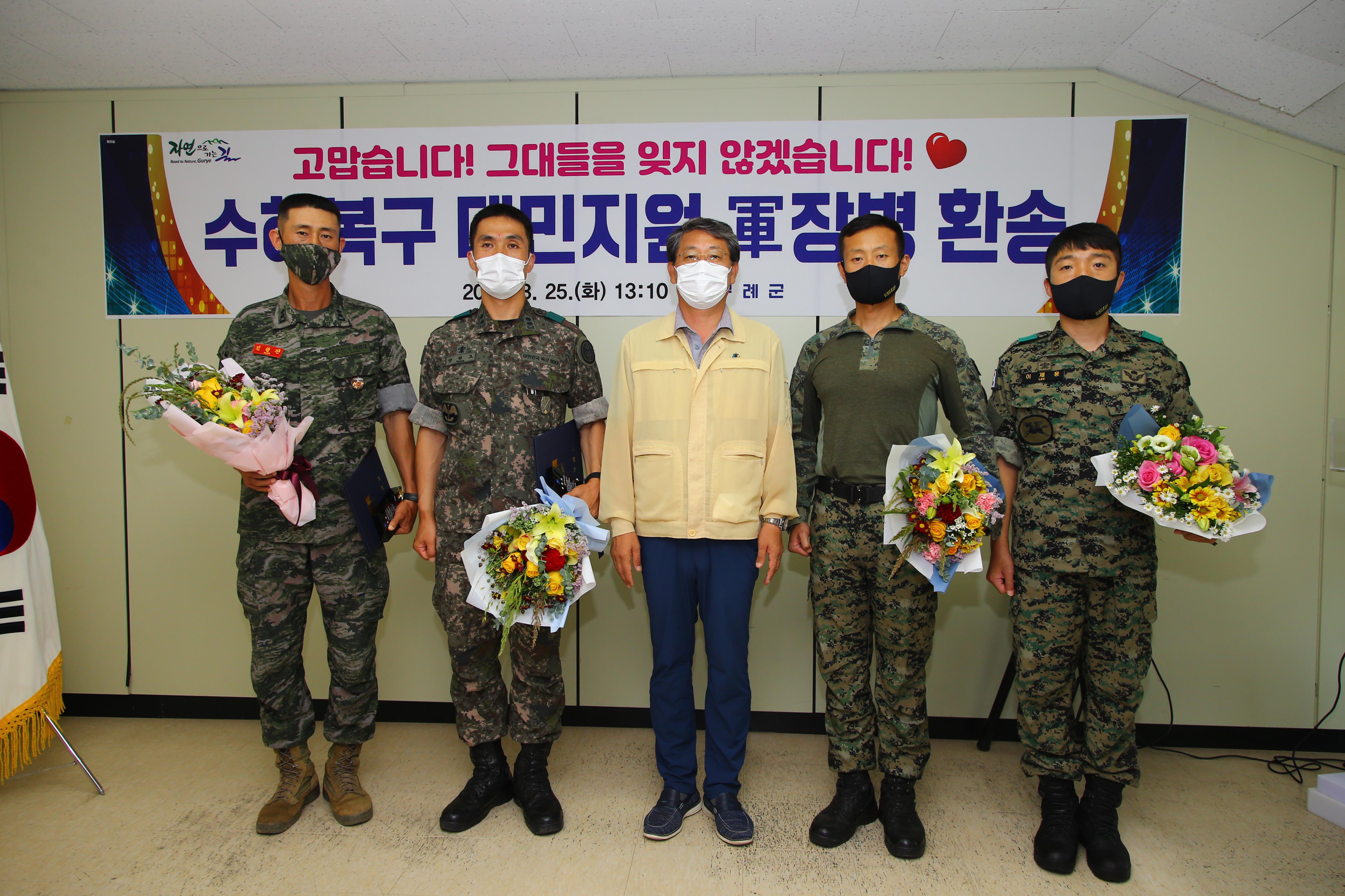 김순호 구례군수는 환송 인사에서 “이번 홍수로 구례군 지역은 막대한 피해 입고 군민들이 절망에 빠져 있을 때 가장 큰 도움과 희망이 됐던 분들이 바로 국군 장병들이었다”며 “군 장병들이 폭염 속에서 일반인들은 엄두도 내기 힘든 복구작업을 훌륭하게 마쳐주신 것에 대해 대단히 감사하다”고 말했다.