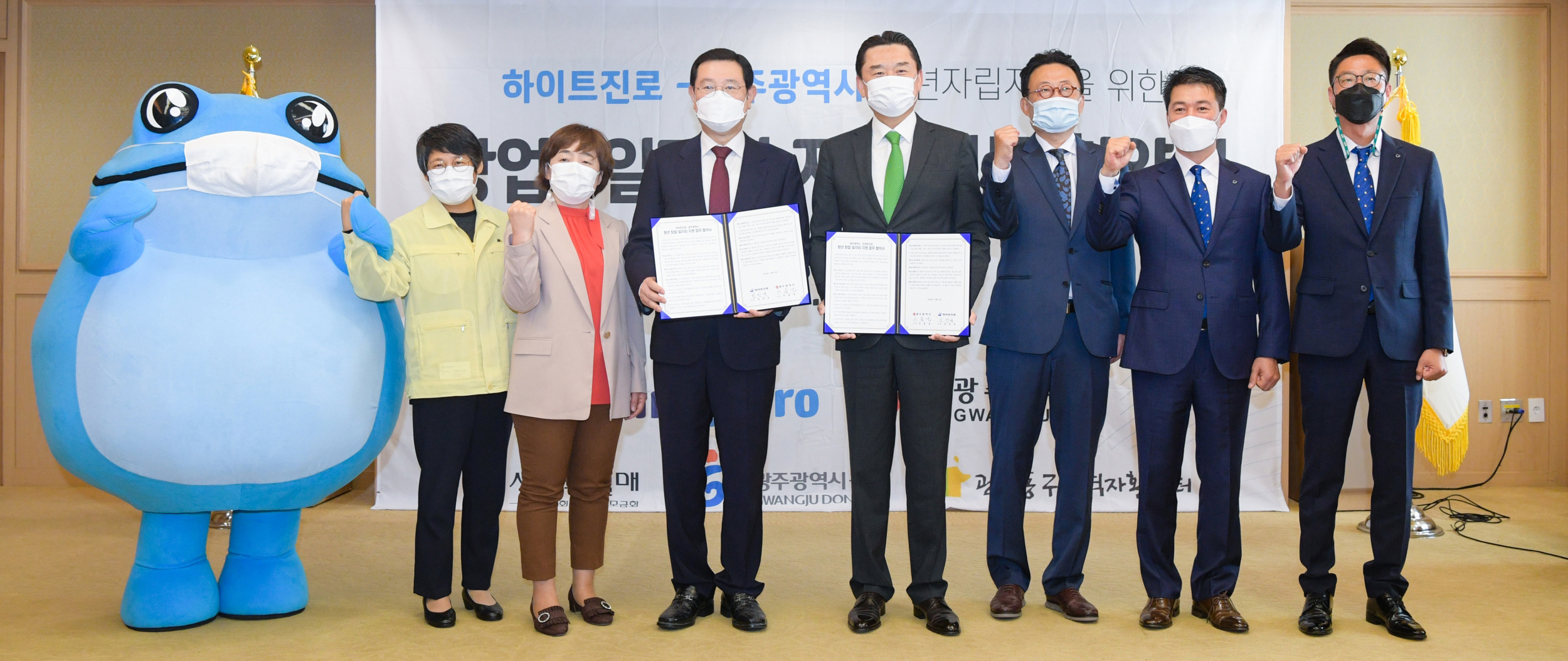 업무협약은 광주시와 하이트진로가 저소득층 청년들의 일자리 확대를 위해 함께 추진하는 청년자립지원 프로그램을 실행하기 위해 추진됐다.