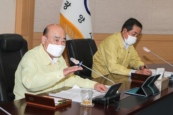 광양시는 코로나19 대응을 위한 사회적 거리두기 2단계가 유지됨에 따라 지난 5일 시청 상황실에서 시장, 부시장, 국ㆍ소장 등 참석인원을 최소화하여 10월 중 확대간부회의를 열고 부서별 주요 현안업무를 점검하고 공유하는 자리를 가졌다.