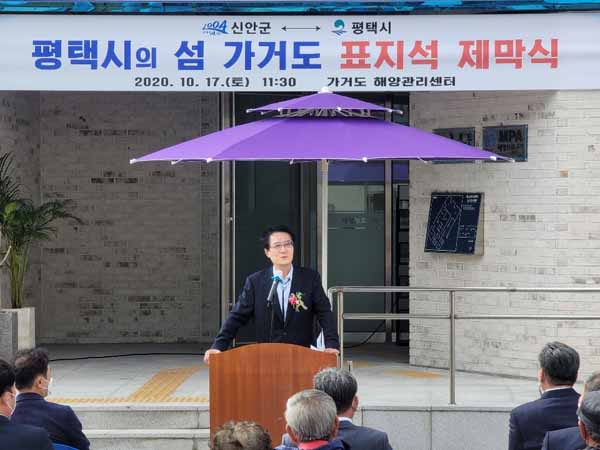 신안군은 지난 17일 국토 최서남단 가거도에서 경기도 평택시와 자매결연협약 체결 및 평택시의 섬 가거도 선포 1주년을 기념하기 위해 표지석 제막식을 가졌다.