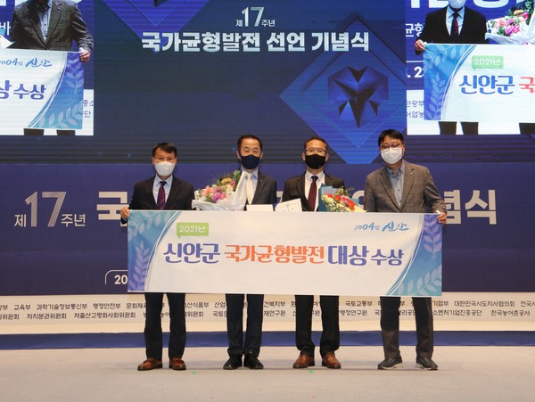 신안군은 지난 23일 세종시 문화예술회관 대강당에서 대통령 직속 국가균형발전위원회가 주최한 ‘국가균형발전 선언 제17주년 기념식’ 행사에서 국가균형발전대상(국가균형발전위원장 표창)을 수상했다고 밝혔다.