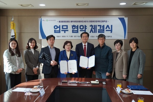 동대문문화재단에서 운영하는 용두어린이영어도서관이 지난 7일 오전 10시 이화여자외국어고등학교와 ‘지역의 글로벌 인재 육성 및 지역 교육 발전을 위한 업무협약’을 체결했다.