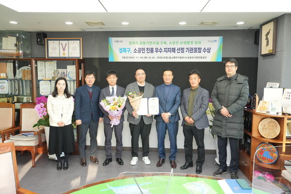 성북구가 지난 11월 30일에 '2023년 소공인 성과대회'에서 소공인 진흥 우수 지자체로 선정돼 기관표창을 수상하는 영예를 안았다.