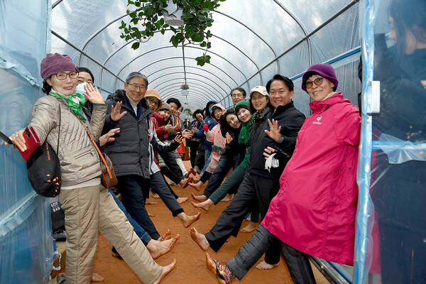 서대문구가 길이 450m, 폭 2m의 안산 황톳길 전 구간에 비닐하우스를 설치하고 11일 오후 개장 행사를 열었다.