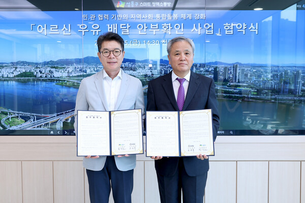 이번 협약은 성동구 지역에서 시작되어 전국적으로 확산된 ‘어르신 안부를 묻는 우유배달’ 23주년을 기념하여 사업의 의미를 되새기고, 민·관이 함께 보다 촘촘한 돌봄 안전망을 구축하고자 추진됐다.