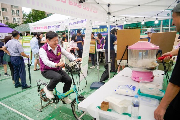행사 전에는 자전거 발전 솜사탕, 탄소중립 퀴즈, 자원순환 캠페인 등 체험 프로그램이 운영되어 200여 명의 주민이 참여했다.