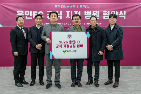 다보스병원 양성범 이사장은 “용인FC는 용인의 정체성과 자부심을 상징하는 시민구단”이라며 “다보스병원은 전문적인 의료 역량을 바탕으로 선수단의 건강과 경기력 향상을 지원하는 것은 물론, 지역사회와 함께 성장하는 파트너로서 역할을 다하겠다”고 밝혔다.
