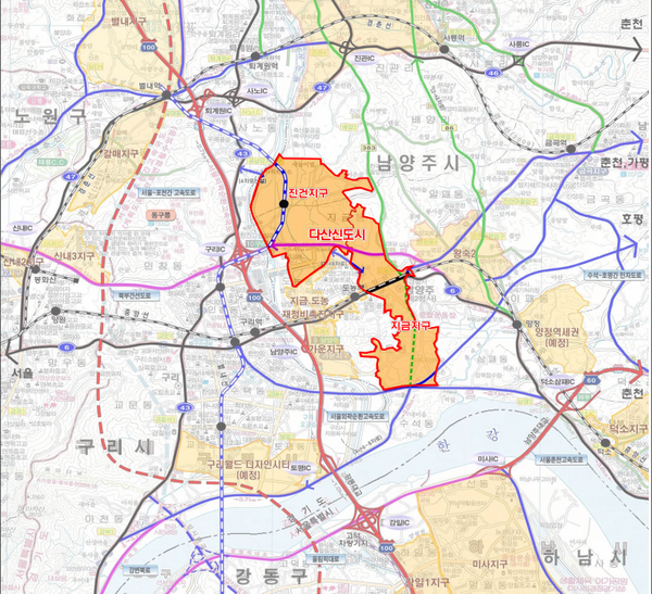 다산신도시는 남양주시 다산동 일원 약 475만㎡ 부지에 조성된 신도시로, 진건 및 지금지구로 구성된다. 사업 초기 열악한 환경 속에서도 다른 택지지구보다 빠르게 15년 만에 성공적으로 완성했으며, 현재 인구 약 10만 명이 거주하는 안정적인 도시로 탈바꿈했다.